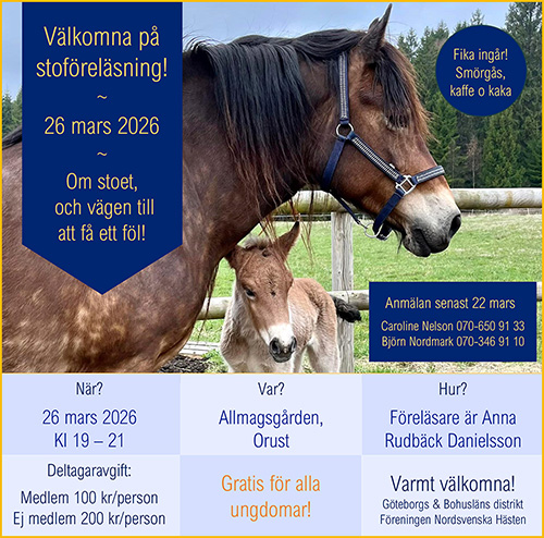 Välkommen på stoföreläsning! 26 mars kl 19:00 - 21:00 Under föreläsningen går vi igenom stoets resa från planering till fölning....